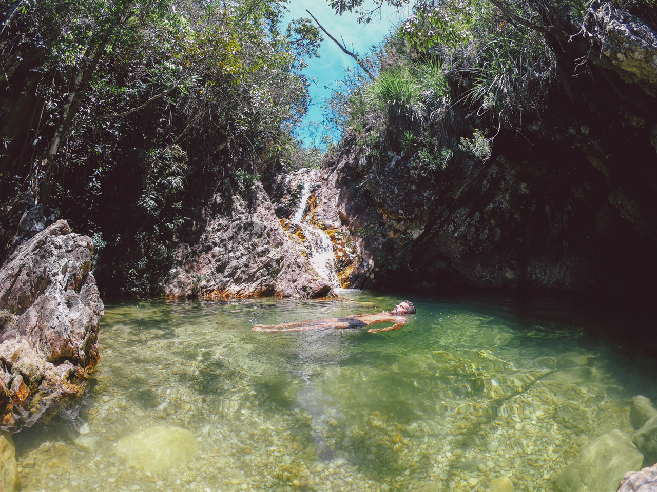 Situada bem próxima da cabeceira do Córrego Marumbé, um dos principais afluentes do Ribeirão de Macacos, a Loca das Borboletas guarda uma água preciosa. Nesta rota de aproximadamente 9km, saindo da portaria do condomínio Quintas do Morro, contamos ainda com o refresco de uma pequena cascatinha no Córrego Penteado, vizinho do Marumbé.