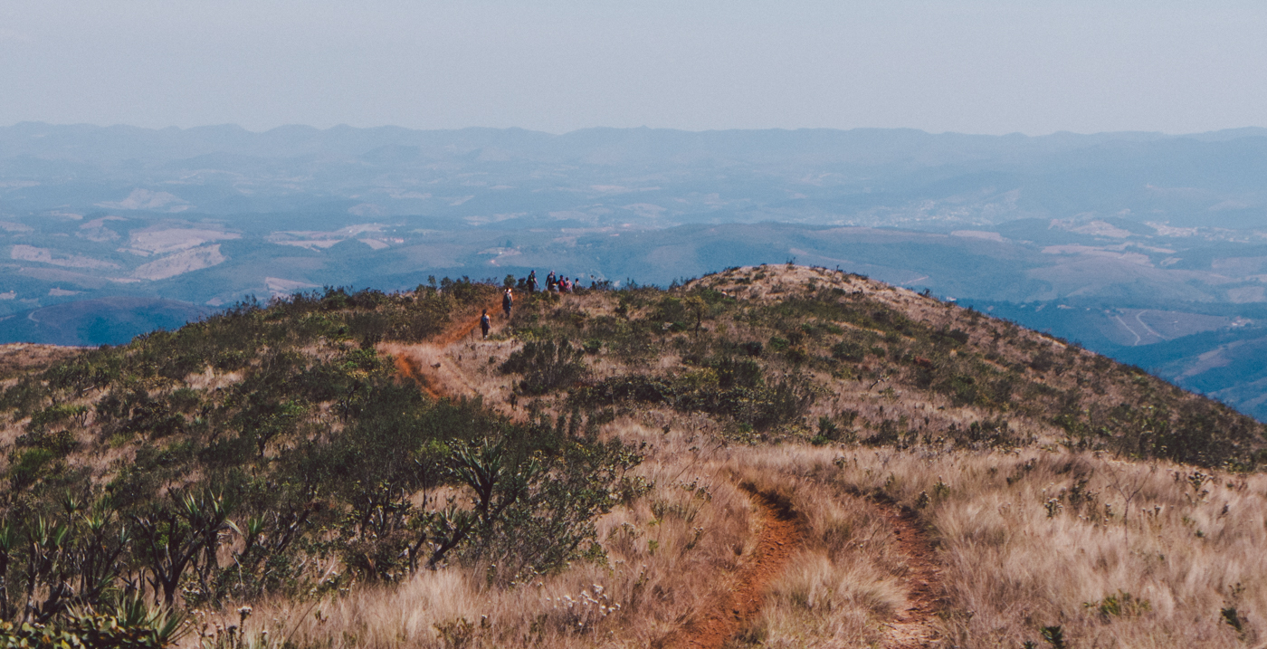 Amanhecemos no sábado com um café da manhã reforçado e começamos a caminhar leves, só com mochilas de lanches e água. As mochilas de roupas e barracas seguem de carro para Morro Vermelho, o destino da Travessia. Teremos cerca de 20km de caminhada, distribuídas em múltiplas paradas e paisagens. O Ar é nosso elemento de suspensão e de elevação dos sentimentos e sensações.